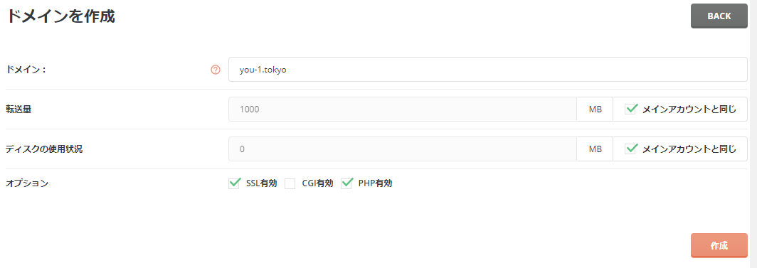 まずは新サーバーのコンパネで今回取得した100円ドメインを設定します。