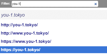 ※試験の時はhttpsではない方が良いかもしれませんが、s付でも無しでもエラーは一定量覚悟してください。こんな感じで候補が出てくれますが、ドメイン沢山取得しているとここの候補も大変なことになります。