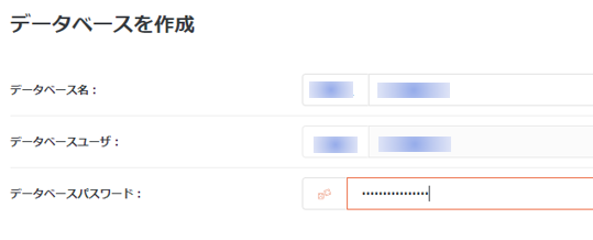データベースより新しいWP用のDBを作ります。ID/PWは直ぐに使いますが忘れないようにしてください。