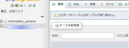 テーブルが無いと警告が出ますが、DBは作ったばかりはテーブルが無いのが当たり前です。
