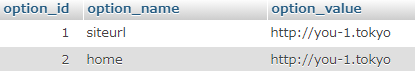 また、移行元と移行先でURLが異なるとサイトの情報が正しく表示されない可能性があります。その場合、PhpMyAdminで以下の設定を新サイト名(つまりテストサイト名)にしてください。